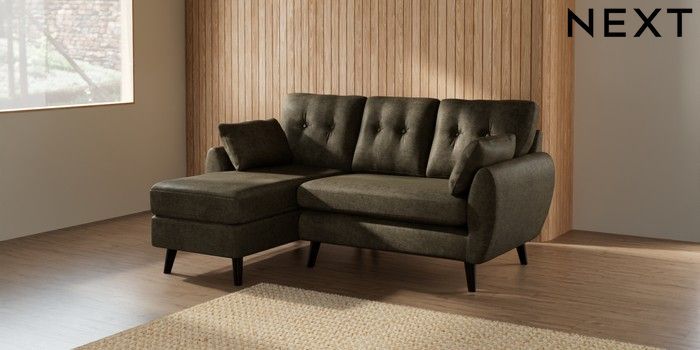 7.2.10 Wilson Buttoned Back Small Sofa Chaise - Left Hand Plush Chenille Moss Green Retro Tapered - Dark | Made Click here to use our website with more accessibility support, for example screen readers