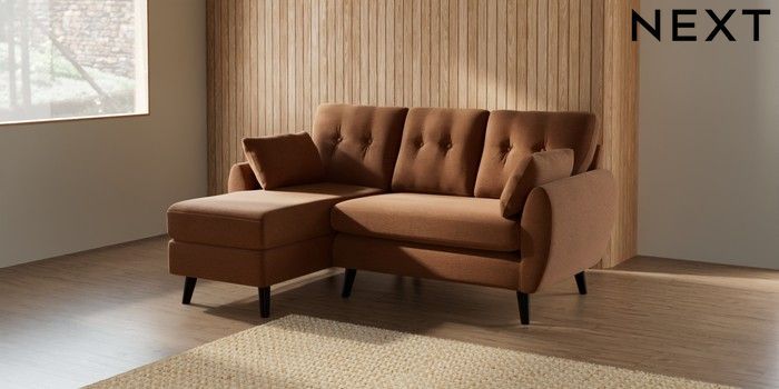 7.2.10 Wilson Buttoned Back Small Sofa Chaise - Left Hand Ripple Chenille Mid Rust Brown Retro Tapered - Dark | Made Click here to use our website with more accessibility support, for example screen readers