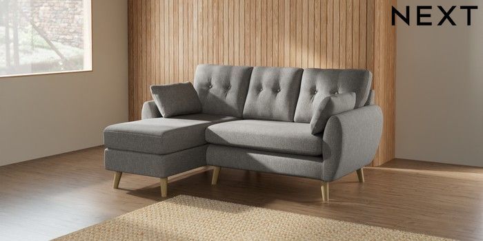 7.2.10 Wilson Buttoned Back Small Sofa Chaise - Left Hand Tweedy Chenille Mid Grey Retro Tapered - Light | Made Click here to use our website with more accessibility support, for example screen readers