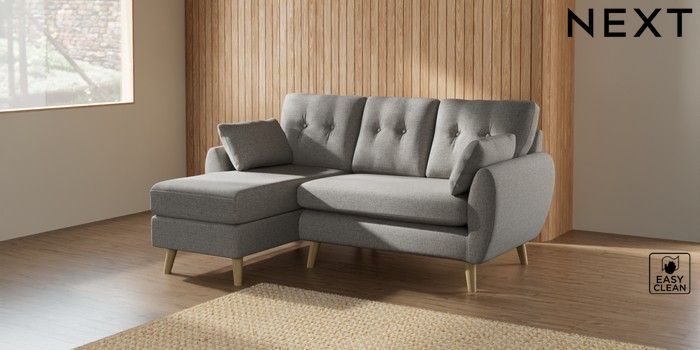 7.2.10 Wilson Buttoned Back Small Sofa Chaise - Left Hand Woven Chenille Easy Clean Light Grey Retro Tapered - Light | Made Click here to use our website with more accessibility support, for example screen readers