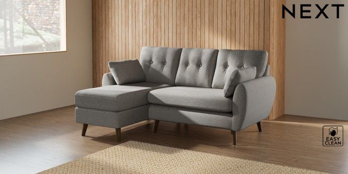7.2.10 Wilson Buttoned Back Small Sofa Chaise - Left Hand Woven Chenille Easy Clean Light Grey Retro Tapered - Mid | Made Click here to use our website with more accessibility support, for example screen readers