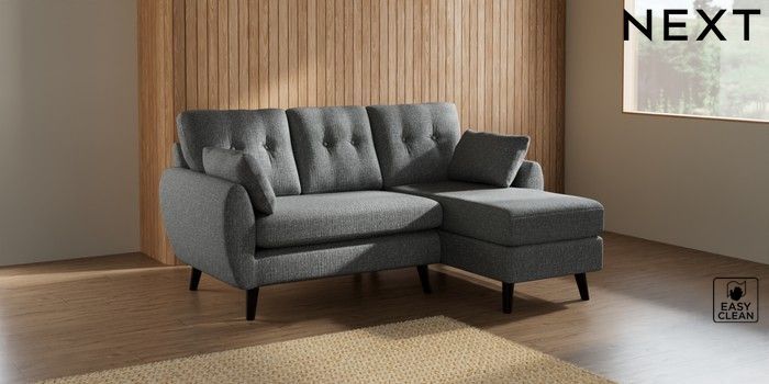 7.2.10 Wilson Buttoned Back Small Sofa Chaise - Right Hand Chunky Boucle Easy Clean Mid Grey Retro Tapered - Dark | Made Click here to use our website with more accessibility support, for example screen readers