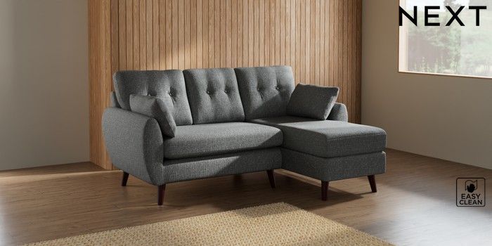 7.2.10 Wilson Buttoned Back Small Sofa Chaise - Right Hand Chunky Boucle Easy Clean Mid Grey Retro Tapered - Dark Brown | Made Click here to use our website with more accessibility support, for example screen readers