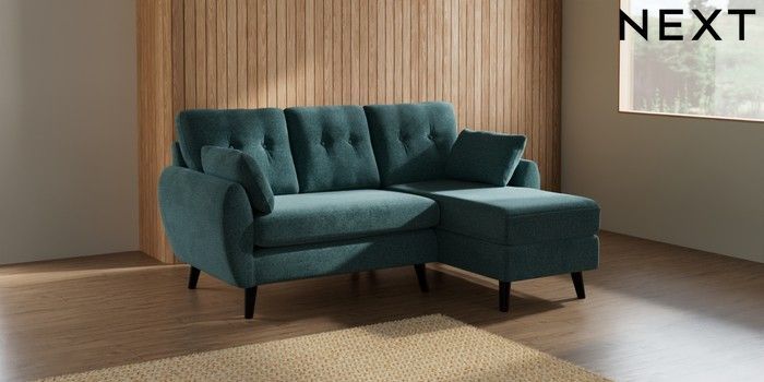 7.2.10 Wilson Buttoned Back Small Sofa Chaise - Right Hand Chunky Chenille Mid Teal Green Retro Tapered - Dark | Made Click here to use our website with more accessibility support, for example screen readers
