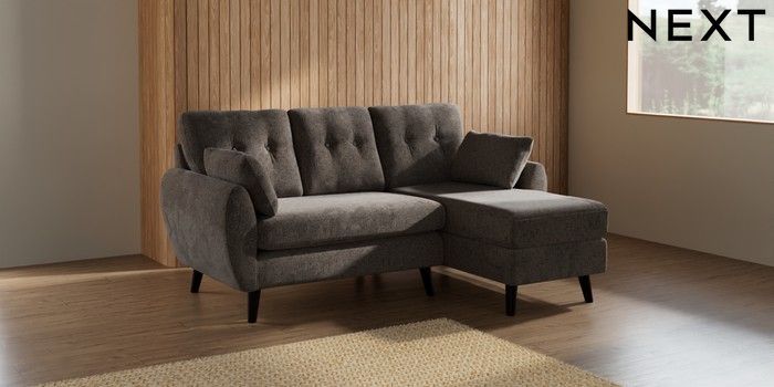 7.2.10 Wilson Buttoned Back Small Sofa Chaise - Right Hand Chunky Chenille Mink Brown Retro Tapered - Dark | Made Click here to use our website with more accessibility support, for example screen readers