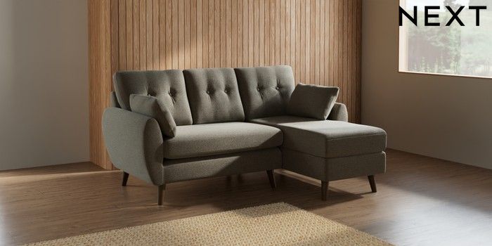7.2.10 Wilson Buttoned Back Small Sofa Chaise - Right Hand Chunky Marl Light Olive Green Retro Tapered - Mid | Made Click here to use our website with more accessibility support, for example screen readers