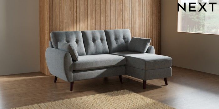 7.2.10 Wilson Buttoned Back Small Sofa Chaise - Right Hand Chunky Marl Mid Grey Retro Tapered - Dark Brown | Made Click here to use our website with more accessibility support, for example screen readers