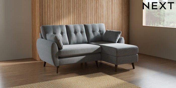 7.2.10 Wilson Buttoned Back Small Sofa Chaise - Right Hand Chunky Marl Mid Grey Retro Tapered - Mid | Made Click here to use our website with more accessibility support, for example screen readers