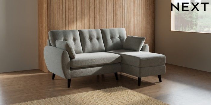 7.2.10 Wilson Buttoned Back Small Sofa Chaise - Right Hand Chunky Texture Dove Retro Tapered - Dark | Made Click here to use our website with more accessibility support, for example screen readers