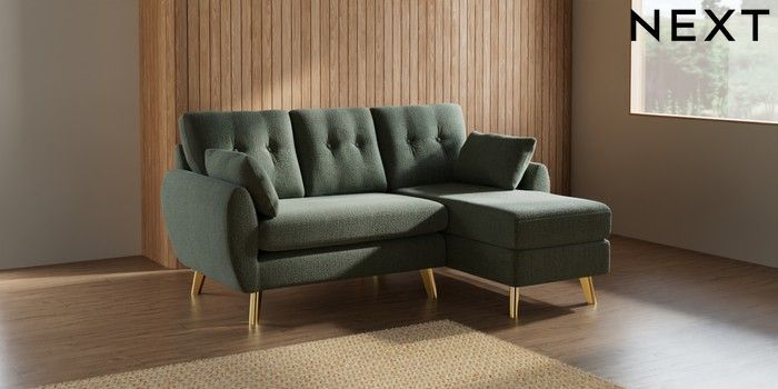 7.2.10 Wilson Buttoned Back Small Sofa Chaise - Right Hand Chunky Texture Mid Forest Green Metal Tapered - Gold | Made Click here to use our website with more accessibility support, for example screen readers