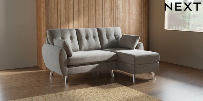 7.2.10 Wilson Buttoned Back Small Sofa Chaise - Right Hand Chunky Weave Dove Grey Metal Tapered - Chrome | Made Click here to use our website with more accessibility support, for example screen readers