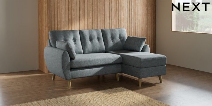 7.2.10 Wilson Buttoned Back Small Sofa Chaise - Right Hand Chunky Weave Mid Blue Retro Tapered - Light | Made Click here to use our website with more accessibility support, for example screen readers