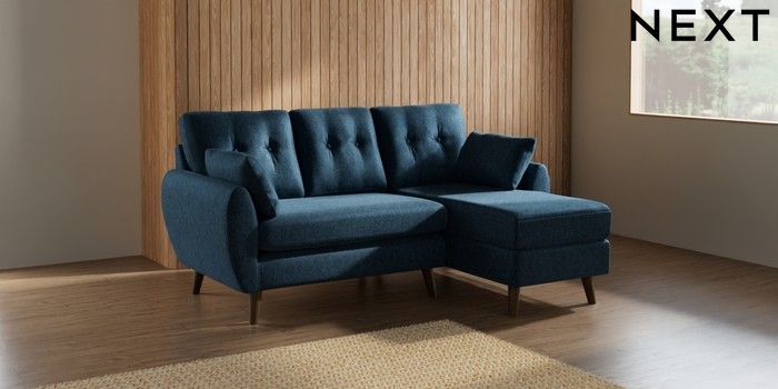 7.2.10 Wilson Buttoned Back Small Sofa Chaise - Right Hand Cotswold Chenille Dark Blue Retro Tapered - Mid | Made Click here to use our website with more accessibility support, for example screen readers