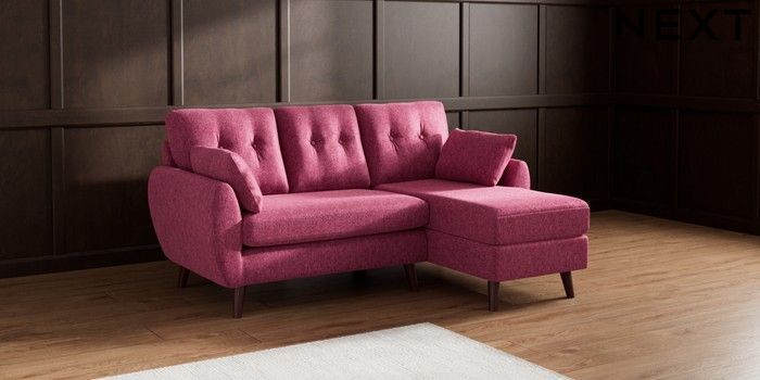7.2.10 Wilson Buttoned Back Small Sofa Chaise - Right Hand Cotswold Chenille Dark Raspberry Pink Retro Tapered - Dark Brown | Made Click here to use our website with more accessibility support, for example screen readers