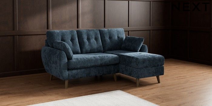 7.2.10 Wilson Buttoned Back Small Sofa Chaise - Right Hand Distressed Velour Midnight Blue Retro Tapered - Mid | Made Click here to use our website with more accessibility support, for example screen readers