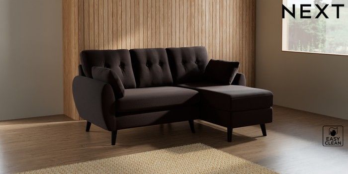 7.2.10 Wilson Buttoned Back Small Sofa Chaise - Right Hand Fine Chenille Easy Clean Chocolate Brown Retro Tapered - Dark | Made Click here to use our website with more accessibility support, for example screen readers