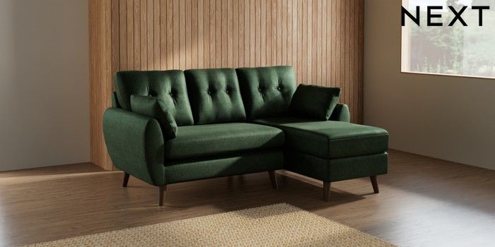 7.2.10 Wilson Buttoned Back Small Sofa Chaise - Right Hand Luxe Chenille Dark Green Retro Tapered - Mid | Made Click here to use our website with more accessibility support, for example screen readers