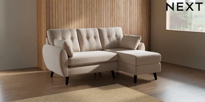 7.2.10 Wilson Buttoned Back Small Sofa Chaise - Right Hand Multi Weave Mid Natural Retro Tapered - Dark | Made Click here to use our website with more accessibility support, for example screen readers