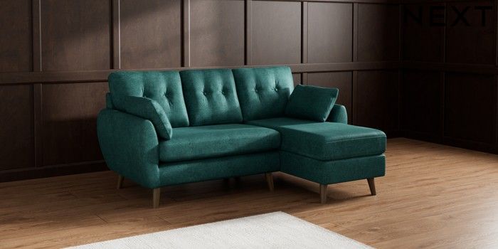 7.2.10 Wilson Buttoned Back Small Sofa Chaise - Right Hand Plush Chenille Dark Teal Green Retro Tapered - Mid | Made Click here to use our website with more accessibility support, for example screen readers