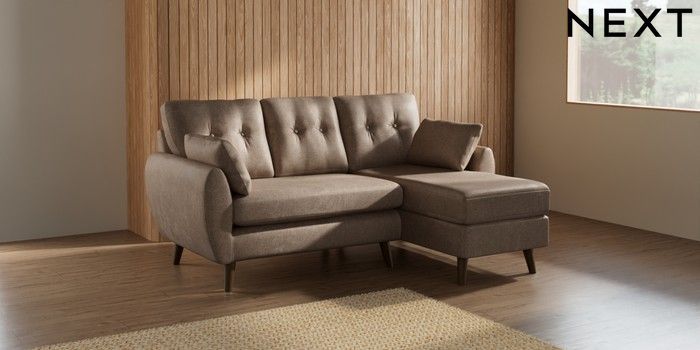 7.2.10 Wilson Buttoned Back Small Sofa Chaise - Right Hand Plush Chenille Mid Natural Retro Tapered - Mid | Made Click here to use our website with more accessibility support, for example screen readers