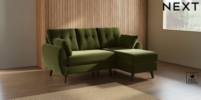 7.2.10 Wilson Buttoned Back Small Sofa Chaise - Right Hand Plush Velvet Easy Clean Mid Olive Green Retro Tapered - Mid | Made Click here to use our website with more accessibility support, for example screen readers