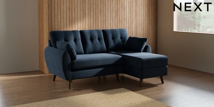7.2.10 Wilson Buttoned Back Small Sofa Chaise - Right Hand Ripple Chenille Dark Blue Retro Tapered - Mid | Made Click here to use our website with more accessibility support, for example screen readers