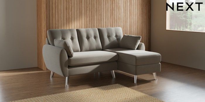 7.2.10 Wilson Buttoned Back Small Sofa Chaise - Right Hand Ripple Chenille Light Natural Metal Tapered - Chrome | Made Click here to use our website with more accessibility support, for example screen readers