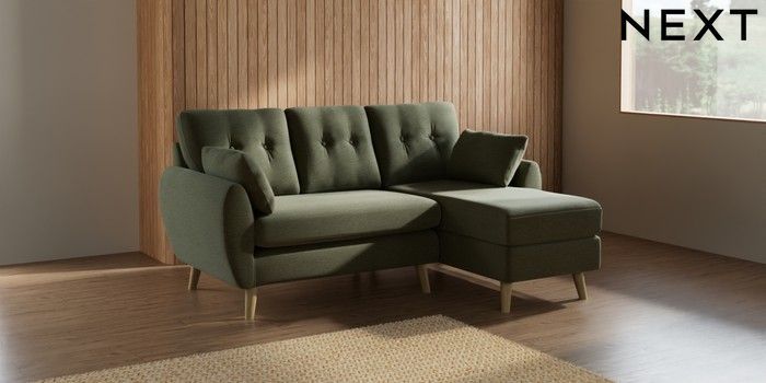 7.2.10 Wilson Buttoned Back Small Sofa Chaise - Right Hand Ripple Chenille Mid Moss Green Retro Tapered - Light | Made Click here to use our website with more accessibility support, for example screen readers