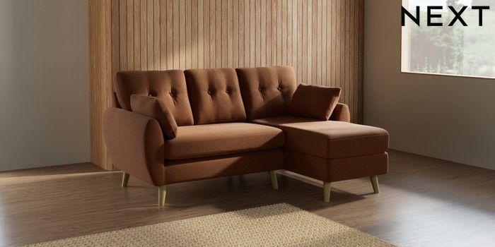 7.2.10 Wilson Buttoned Back Small Sofa Chaise - Right Hand Ripple Chenille Mid Rust Brown Retro Tapered - Light | Made Click here to use our website with more accessibility support, for example screen readers