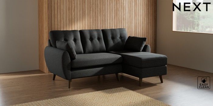 7.2.10 Wilson Buttoned Back Small Sofa Chaise - Right Hand Tweedy Blend Easy Clean Charcoal Grey Retro Tapered - Mid | Made Click here to use our website with more accessibility support, for example screen readers