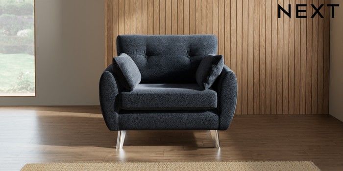 7.2.10 Wilson Buttoned Back Snuggle Boucle Chenille Dark Slate Blue Metal Tapered - Chrome | Made Click here to use our website with more accessibility support, for example screen readers