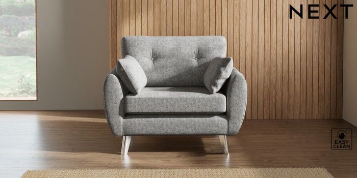 7.2.10 Wilson Buttoned Back Snuggle Chunky Boucle Easy Clean Light Grey Metal Tapered - Chrome | Made Click here to use our website with more accessibility support, for example screen readers