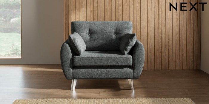 7.2.10 Wilson Buttoned Back Snuggle Cotswold Chenille Dark Grey Metal Tapered - Chrome | Made Click here to use our website with more accessibility support, for example screen readers