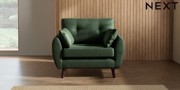 7.2.10 Wilson Buttoned Back Snuggle Luxe Chenille Dark Green Retro Tapered - Dark Brown | Made Click here to use our website with more accessibility support, for example screen readers