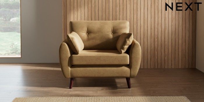 7.2.10 Wilson Buttoned Back Snuggle Luxe Chenille Honey Yellow Retro Tapered - Dark Brown | Made Click here to use our website with more accessibility support, for example screen readers