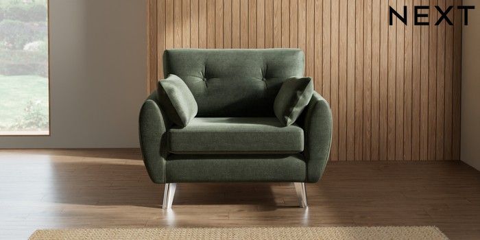 7.2.10 Wilson Buttoned Back Snuggle Luxe Chenille Mid Green Metal Tapered - Chrome | Made Click here to use our website with more accessibility support, for example screen readers