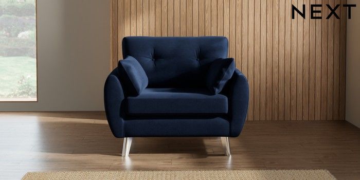 7.2.10 Wilson Buttoned Back Snuggle Luxe Chenille Navy Blue Metal Tapered - Chrome | Made Click here to use our website with more accessibility support, for example screen readers