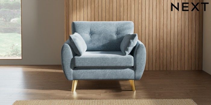 7.2.10 Wilson Buttoned Back Snuggle Plush Chenille Light Blue Metal Tapered - Gold | Made Click here to use our website with more accessibility support, for example screen readers