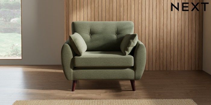 7.2.10 Wilson Buttoned Back Snuggle Ripple Chenille Mid Moss Green Retro Tapered - Dark Brown | Made Click here to use our website with more accessibility support, for example screen readers