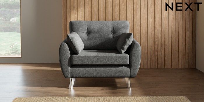 7.2.10 Wilson Buttoned Back Snuggle Tweedy Chenille Dark Grey Metal Tapered - Chrome | Made Click here to use our website with more accessibility support, for example screen readers
