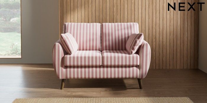 7.2.10 Wilson 2 Seater Small Sofa Bold Chenille Stripe Dark Pink Retro Tapered - Mid | Made Click here to use our website with more accessibility support, for example screen readers