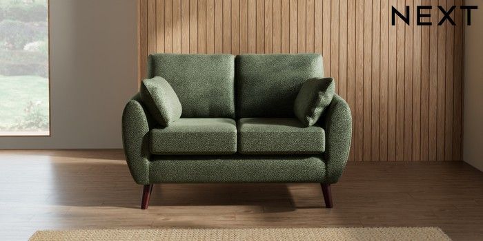 7.2.10 Wilson 2 Seater Small Sofa Boucle Chenille Dark Moss Green Retro Tapered - Dark Brown | Made Click here to use our website with more accessibility support, for example screen readers