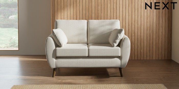 7.2.10 Wilson 2 Seater Small Sofa Chenille Stripe Moss Green Retro Tapered - Mid | Made Click here to use our website with more accessibility support, for example screen readers