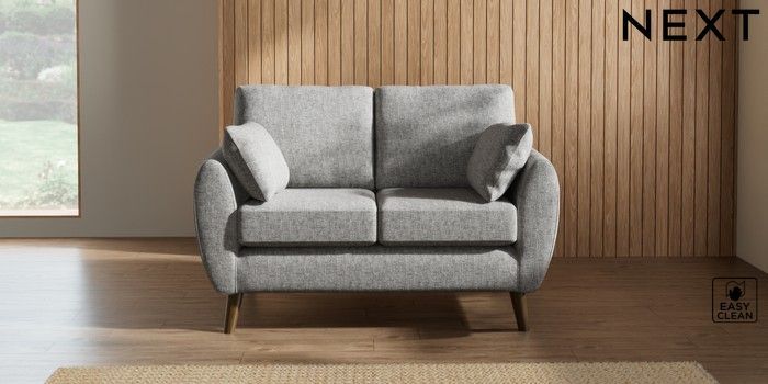 7.2.10 Wilson 2 Seater Small Sofa Chunky Boucle Easy Clean Light Grey Retro Tapered - Mid | Made Click here to use our website with more accessibility support, for example screen readers
