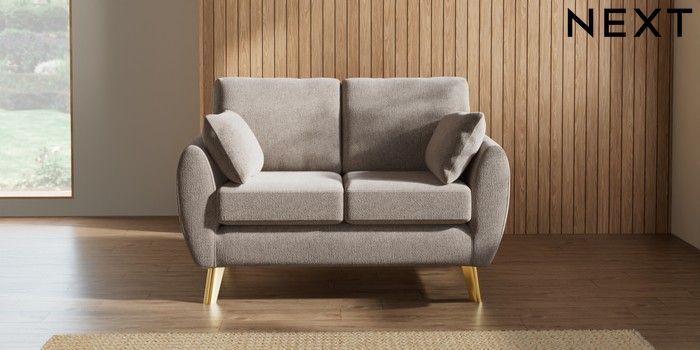 7.2.10 Wilson 2 Seater Small Sofa Chunky Chenille Light Dove Metal Tapered - Gold | Made Click here to use our website with more accessibility support, for example screen readers