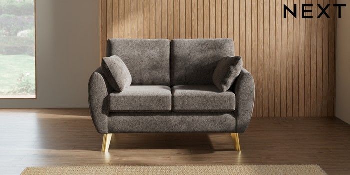 7.2.10 Wilson 2 Seater Small Sofa Chunky Chenille Mink Brown Metal Tapered - Gold | Made Click here to use our website with more accessibility support, for example screen readers