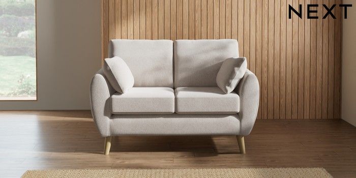 7.2.10 Wilson 2 Seater Small Sofa Chunky Chenille Oyster Retro Tapered - Light | Made Click here to use our website with more accessibility support, for example screen readers