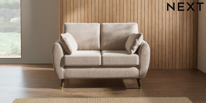 7.2.10 Wilson 2 Seater Small Sofa Cotswold Chenille Light Natural Low Retro Tapered Metal Cap - Mid | Made Click here to use our website with more accessibility support, for example screen readers