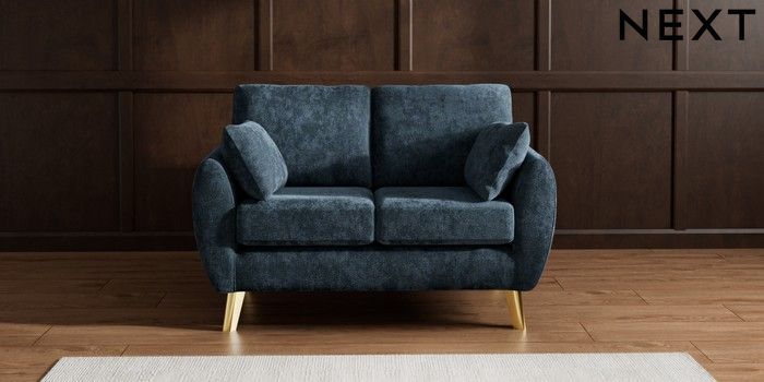 7.2.10 Wilson 2 Seater Small Sofa Distressed Velour Midnight Blue Metal Tapered - Gold | Made Click here to use our website with more accessibility support, for example screen readers