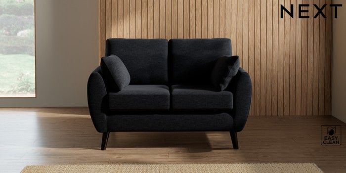 7.2.10 Wilson 2 Seater Small Sofa Fine Chenille Easy Clean Black Retro Tapered - Dark | Made Click here to use our website with more accessibility support, for example screen readers